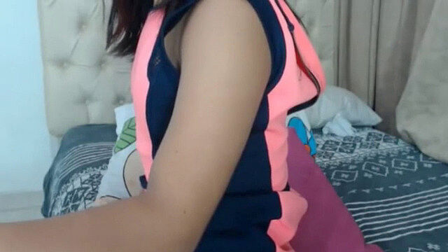 Una tgirl dai capelli scuri si copre il viso di sperma